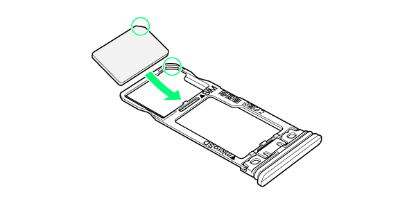 - SIMカードの向き(切り欠き部分/IC(金属)部分を下)に注意して、ゆっくりと取り付けます。