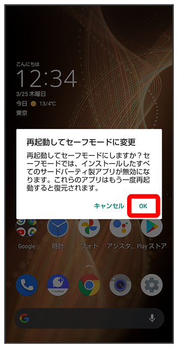 - セーフモードで電源を入れると、追加していたウィジェットが削除されることがあります。