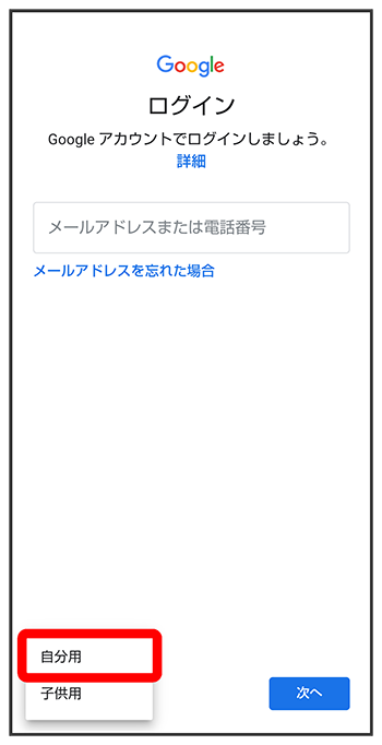 - 子供用のアカウントを作成する場合は、をタップし、画面に従って操作してください。