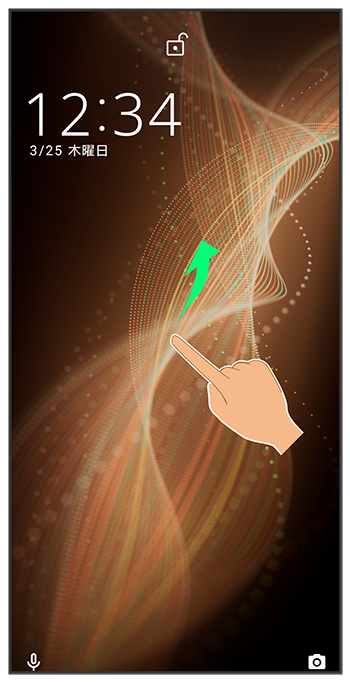 ロック画面を上にフリック
