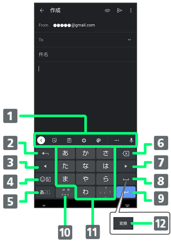 - 表示するアイテムを変更することもできます。詳しくは、「ツールバーについて(Gboard)」を参照してください。