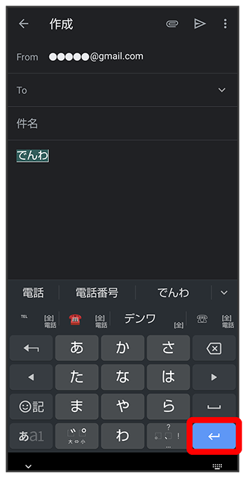 をタップしたあと、次の文字を入力します。入力した文字の背景色が変わったあとは、そのまま次の文字が入力できます。 - キーをくり返しタップせず、キーをロングタッチしたときに表示されるキー入力ガイドを利用して文字を入力することもできます。詳しくは、「フリック入力について」を参照してください。