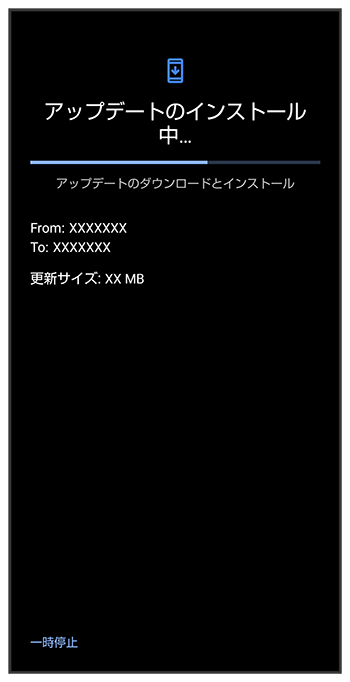 - システムアップデート中も他の機能を使用できます。ただし、システムアップデートの通知後10日間は、システムアップデート中に他の機能を使用していると、アップデートのインストールが一時的に停止されます。をタップすると、インストールが再開され、他の機能も使用可能になります。