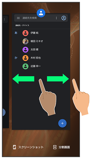 アプリの履歴を左右にドラッグして、操作したいアプリの履歴を選択