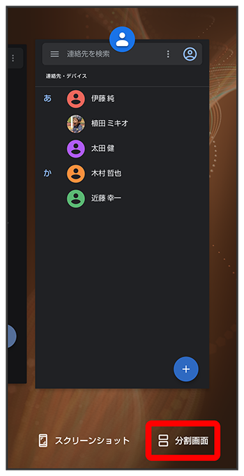 本機の表示画面を分割し、2つのアプリを表示、操作できます。