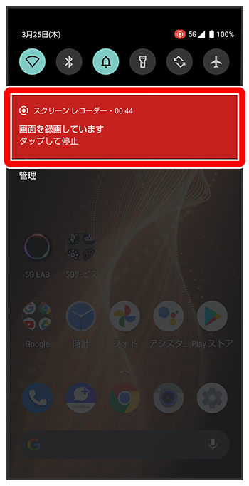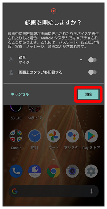 ステータスバーにカウントダウンが表示され、録画を開始します。