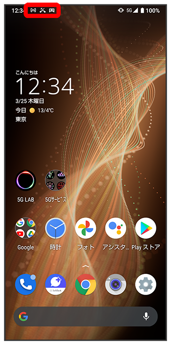ステータスバーの左側に表示されるアイコンには、次のようなものがあります。
