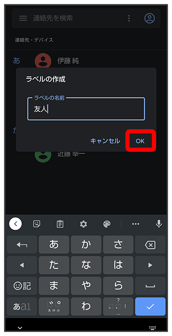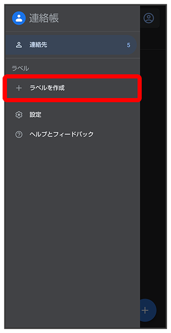 (電話)と操作して表示した連絡先画面では、ラベルの登録はできません。