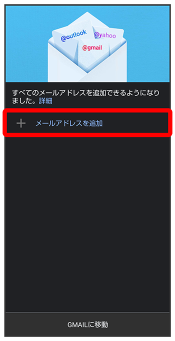(Gmail)を起動すると、アカウント設定画面が表示され、設定操作を行うことができます。