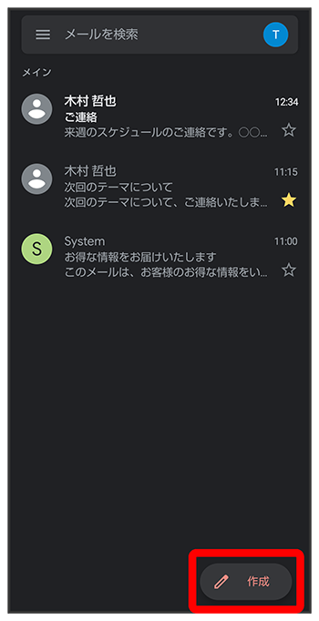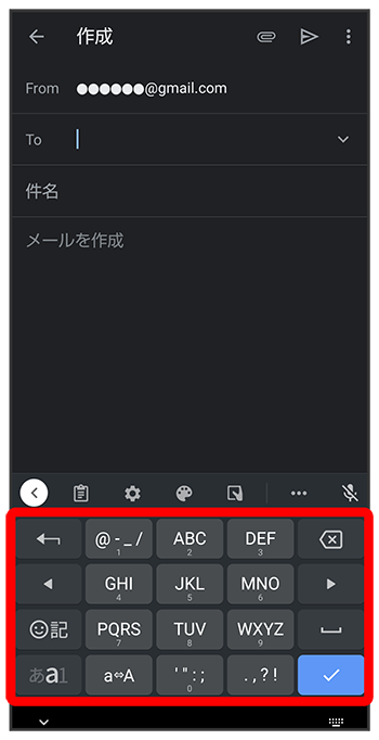 メール作成画面で- を選択すると、Google ドライブに保存したファイルを添付できます。