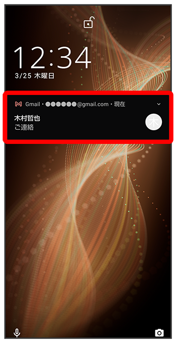 新着メールを受信すると、ロック画面に新着メッセージ通知が表示されます。