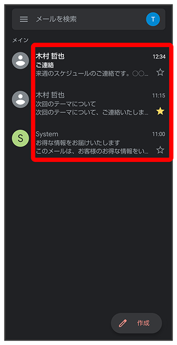 - メール一覧画面で、削除するメールのアイコンをタップ(