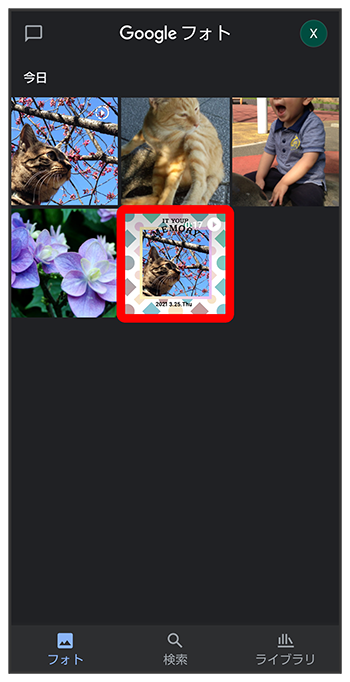 ショートムービー再生画面で画面をタップ//- 保存されていないパターンの動画を保存するときは、をタップします。