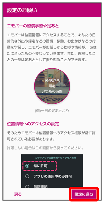 - 機能の利用を許可しなかった場合、アプリが正常に動作しないことがあります。