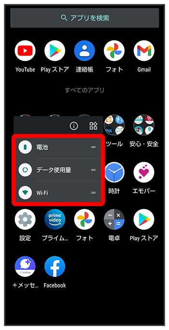 アプリをロングタッチすると、アプリにより機能へのショートカットが表示される場合があります。機能ショートカットをタップすると、その機能を直接起動できます。