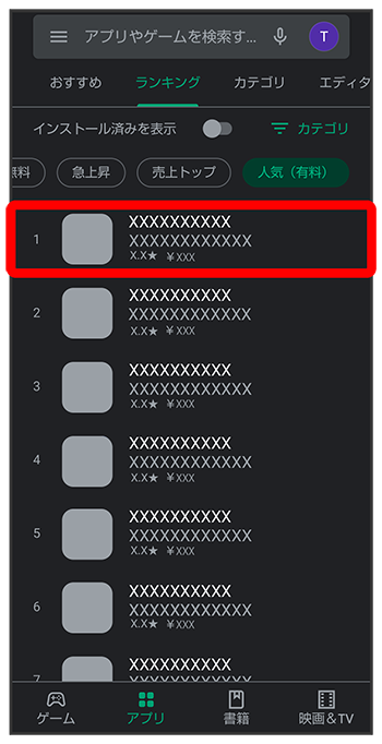 有料アプリをタップ