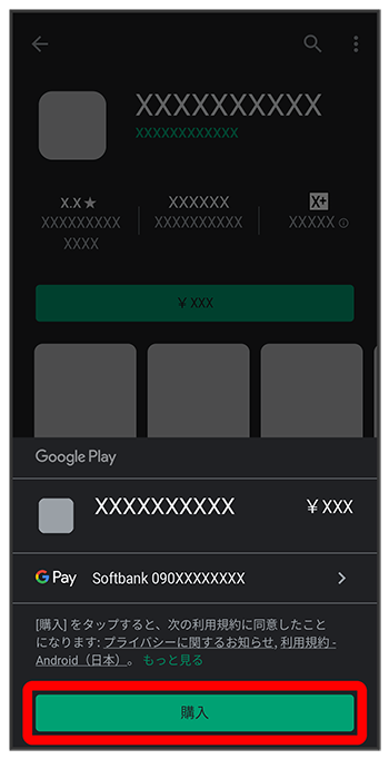 Google Play画面でアプリの購入について