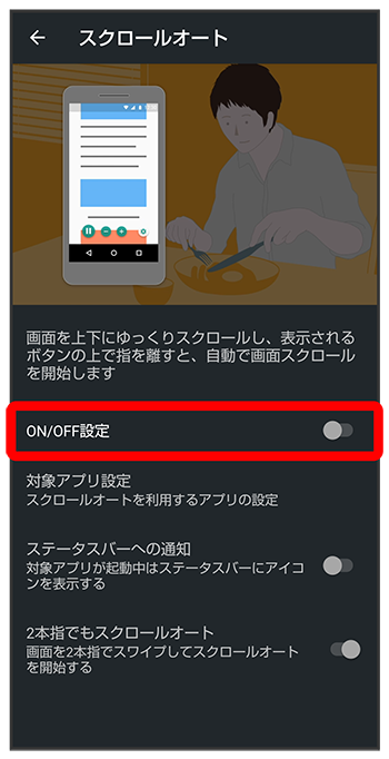 2本指でスワイプしてスクロールオートを利用するかどうかを設定する