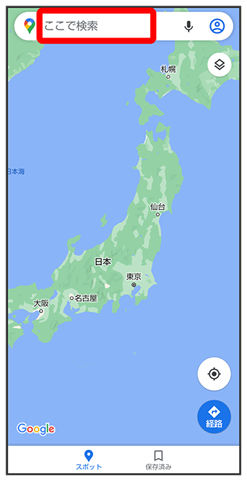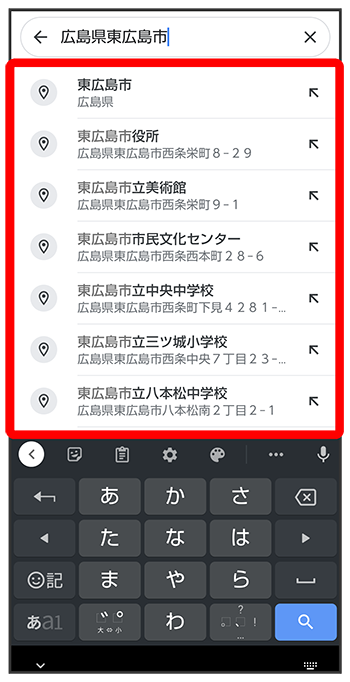 住所や都市、施設名などを入力選択候補から住所や都市、施設名などをタップ