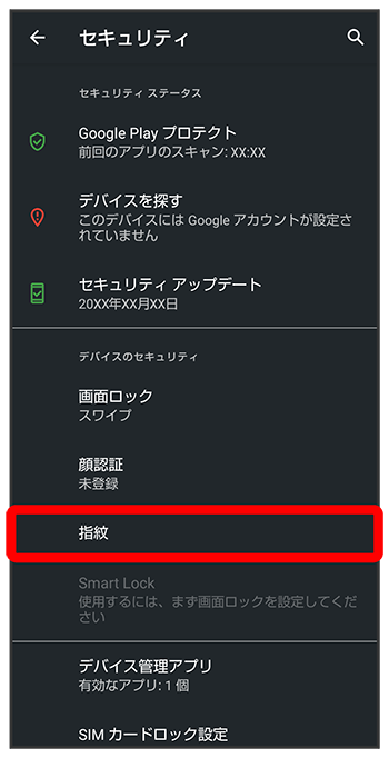 - 指紋認証ができないときの予備の画面ロック解除方法になります。