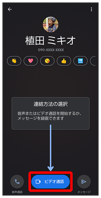 ビデオ通話がかかります。相手がビデオ通話を受けると、通話ができます。