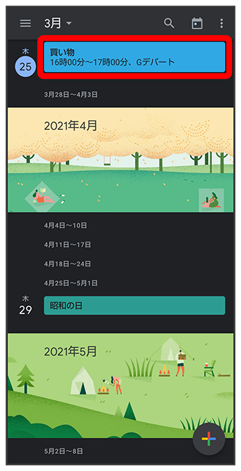 カレンダー画面で、月部分をタップ表示させたい日をタップこちらで検索できます