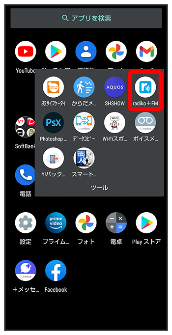 インターネットラジオの番組表画面で、画面端から左/右にフリックアナログFMラジオ利用時のご注意