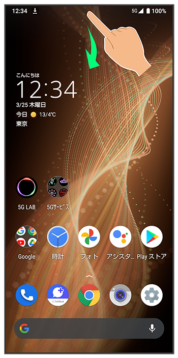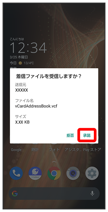 相手からデータの受信要求があると、ロック画面に通知が表示されます。次の操作を行うと、受信することができます。