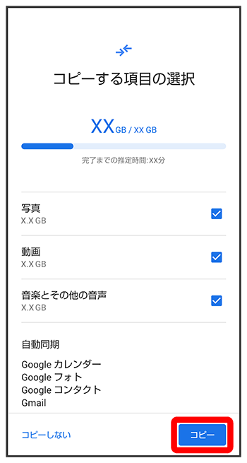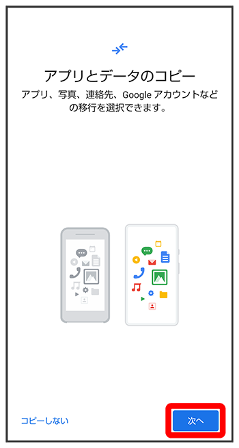 本機の初期設定中に、クイックスイッチアダプターを利用してこれまでお使いのスマートフォンから簡単にデータを引き継ぐことができます。