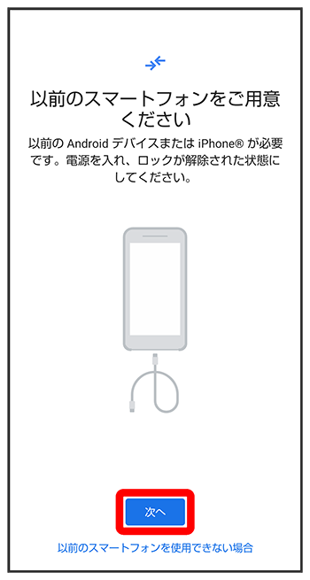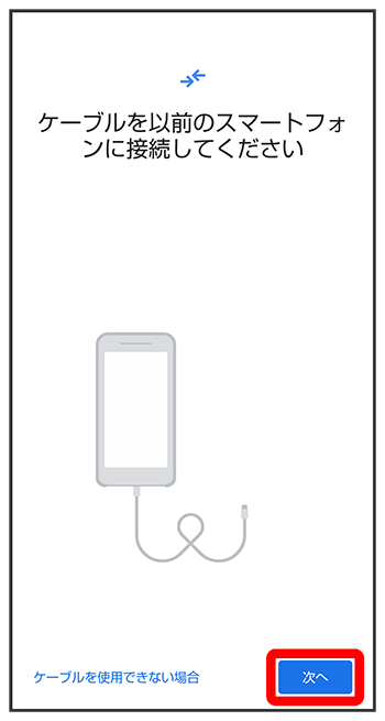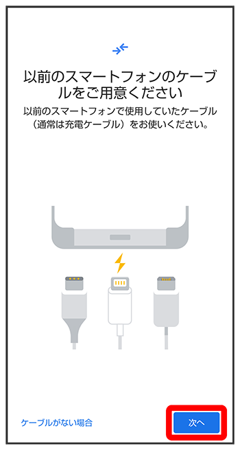 - これまでお使いのスマートフォンのケーブルがない場合は、をタップして、画面に従って操作してください。