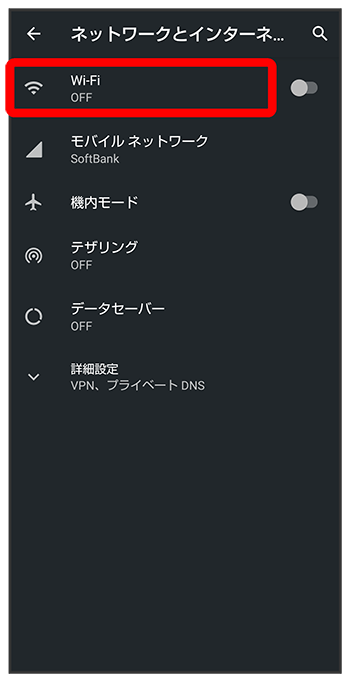 Wi-Fi画面で解除したいアクセスポイントをタップ- をタップすると、接続を解除したアクセスポイントに接続できます。