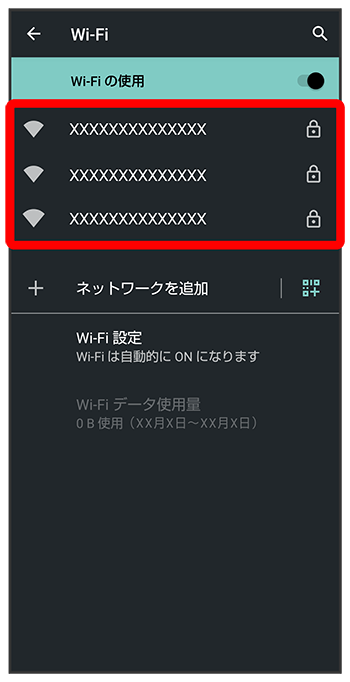 Wi-Fi画面でプロバイダーを選択Wi-Fiを使用したデータ使用量を確認する