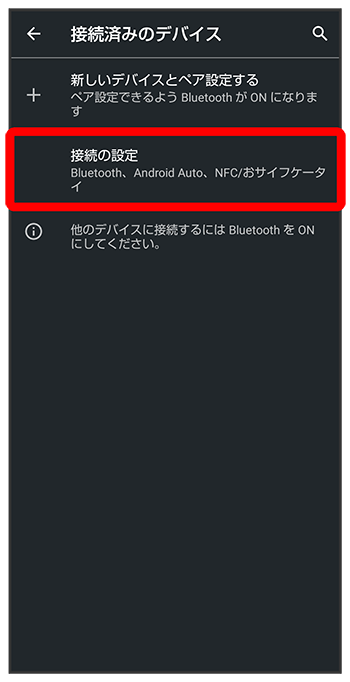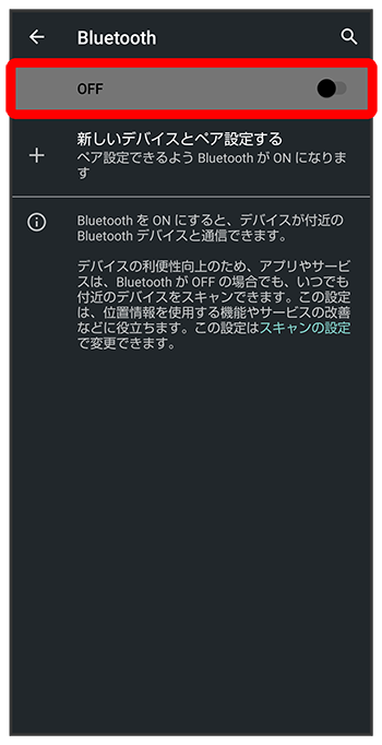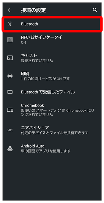 機内モードを設定していませんか。Bluetooth®機能を有効にした状態で機内モードを設定すると、いったん、Bluetooth®機能は無効になります。