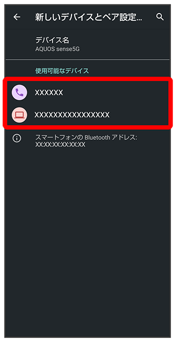 「使用可能なデバイス」欄に近くにあるBluetooth®機器が表示されます。