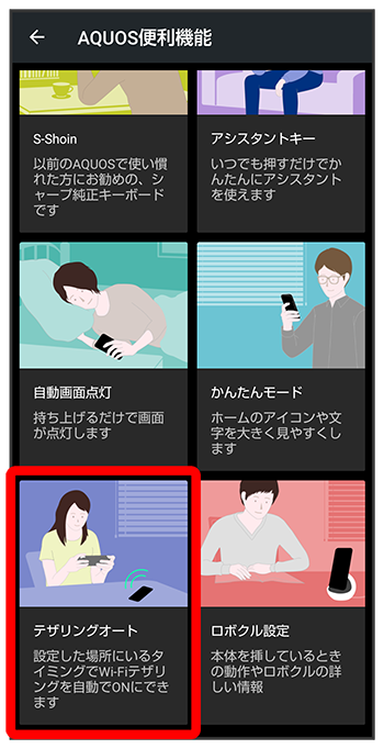 テザリングオート画面で/充電中のみWi-Fiテザリングを有効にするかどうかを設定する