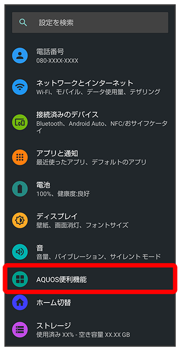 簡単で見やすいホーム画面と読みやすい文字に設定できます。