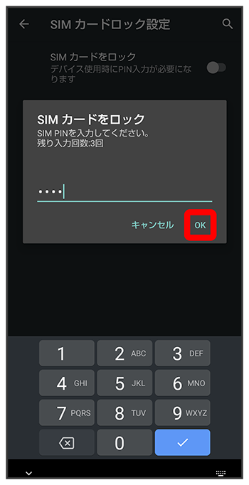 PINコードを操作するときや、SIMカードロック設定時に電源を入れたときは、PINコードの入力が必要になります。