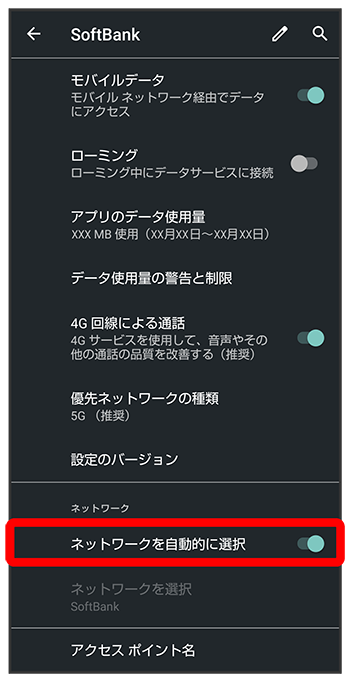 - 自動的に適切な通信事業者に接続するように設定するときは、再度、をタップします(