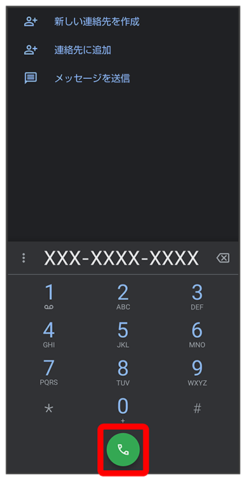 ダイヤルキーをタップして相手の電話番号を入力