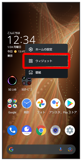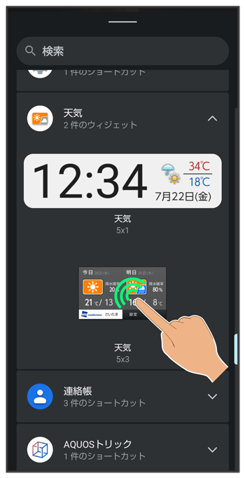 追加したいウィジェットをロングタッチ