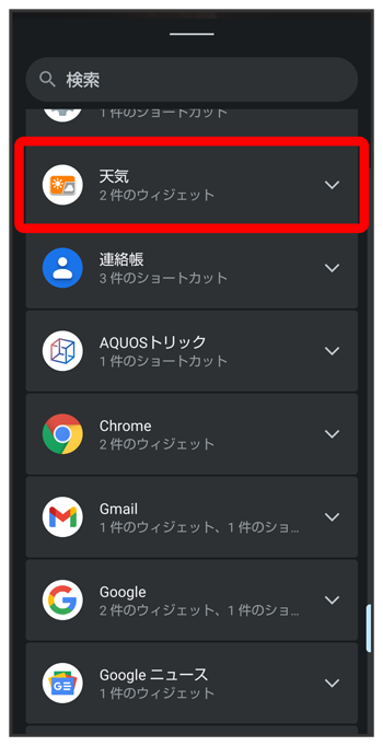 追加したいウィジェットのアプリ名をタップ