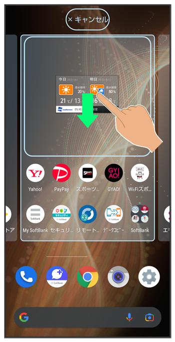 ホーム画面のアイコンがない場所をロングタッチ