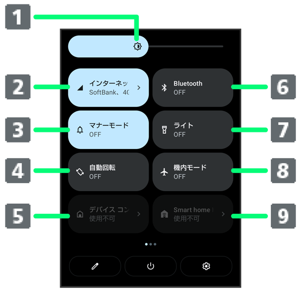 クイック設定パネルの見かた