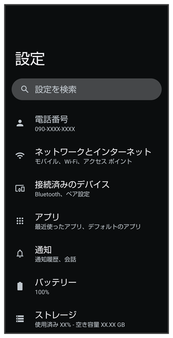 | アプリ | 「アプリと通知」の一部の項目が「アプリ」として追加されます。 が追加され、数ヵ月使用していないアプリを整理して空き容量を増やしたり、権限の削除が行われます。 の項目が一部変更されます。が削除されます。設定する場合は、設定するアプリを選択「バッテリー使用量の管理」から設定してください。 |