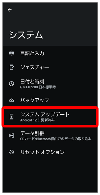 - システムアップデートが進むと最後にが表示されます。タップして、システムアップデートを完了させてください。