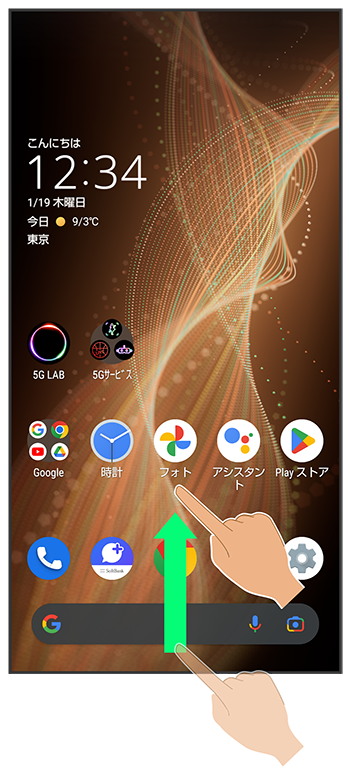 画面下部から上にドラッグ