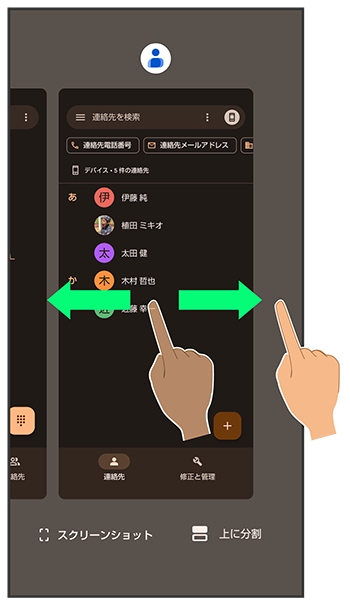 アプリの履歴を左右にドラッグして、次に操作したいアプリの履歴をタップ