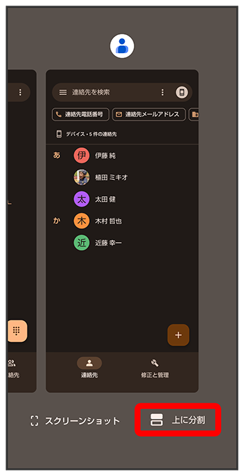 選択したアプリが画面の上下に表示されます(マルチウインドウ画面)。