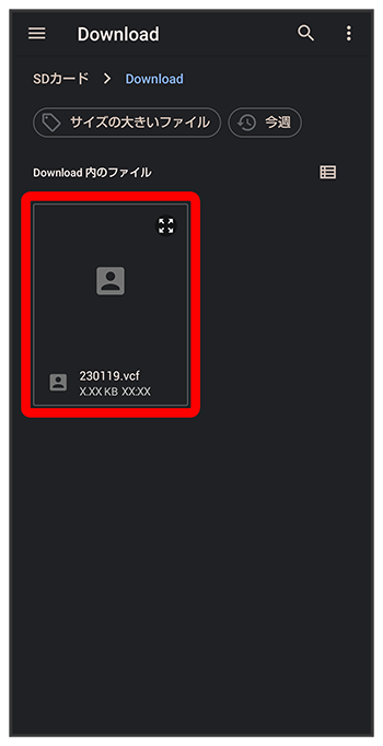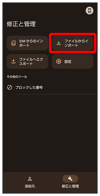 SDカードから電話帳データを読み込む