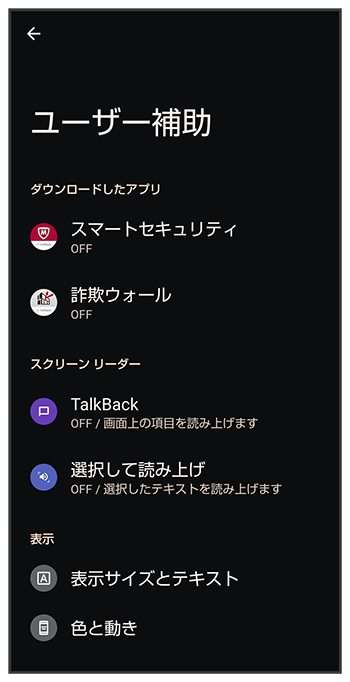 | 操作のコントロール | /が移動されます。 にが追加され、片手で操作しやすいように画面の上半分を下に移動させるかどうかなどを設定できます。 がに変更されます。が追加され、電話着信時やキーボードをタップしたときなどにバイブレータを動作させるかどうかを設定できます。//が追加されます。 そのほかの項目が一部変更されます。 |